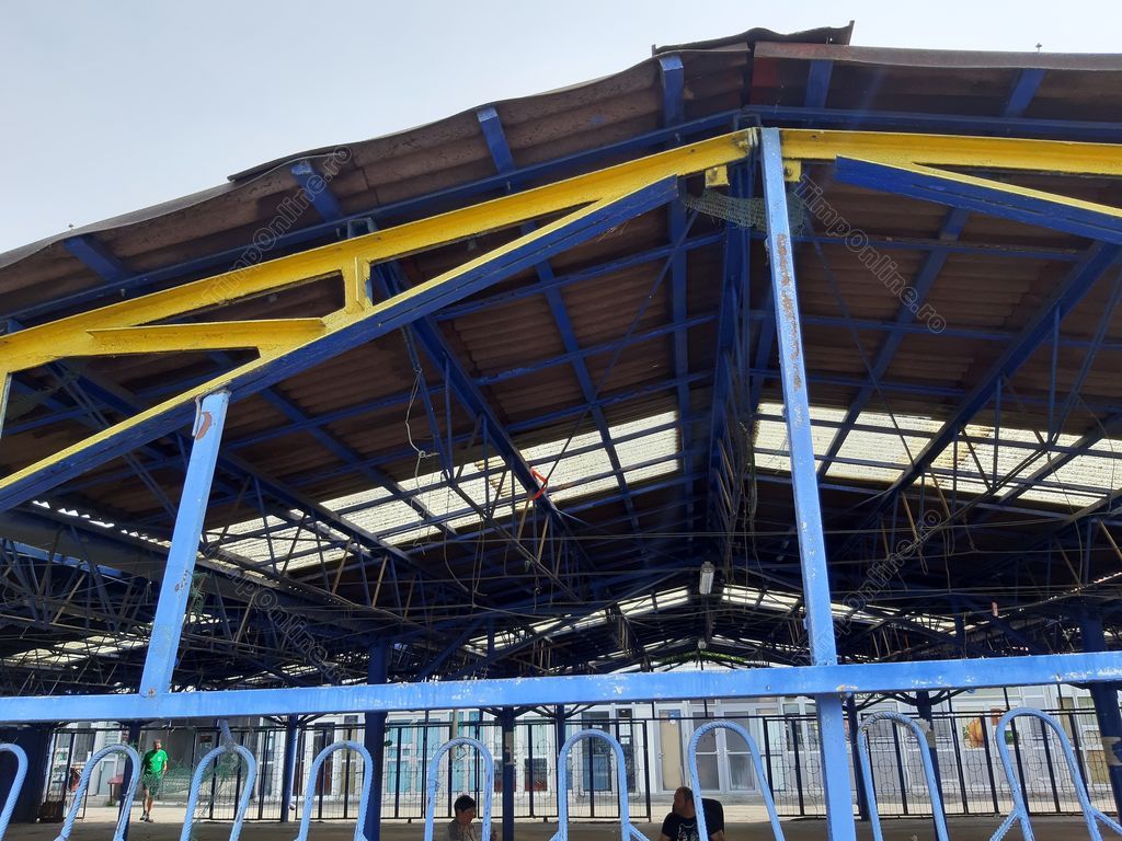 Prima oară ( prin ‘75-76’, nu mai rețin exact anul ) , idioții au fixat acoperișul pe stâlpii rotunzi , doar cu coliere . Mesele inca nu erau puse (ca in pozele de azi ) . A venit iarna , a nins mult intr-o noapte, apoi ninsoarea s-a transformat in ploaie . Colierele n-au putut susține greutatea asa ca dimineata pe la 5 întreg acoperișul s-a prăbușit peste cateva Dacii parcate de vecini “la scuteala” .