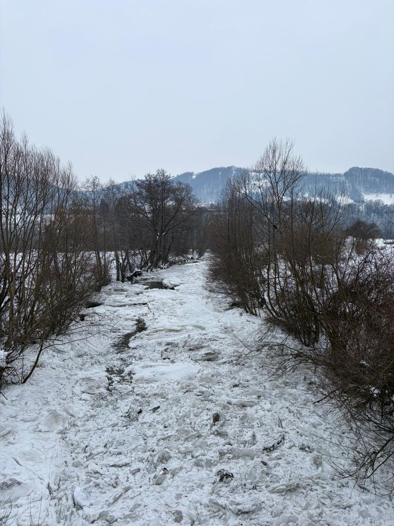 ACTUALIZARE Între localitățile Rebrișoara și Rebra, în amonte de stația de apă, s-a format un pod de gheață pe cursul râului, pe o distanță de aproximativ 500 de metri.