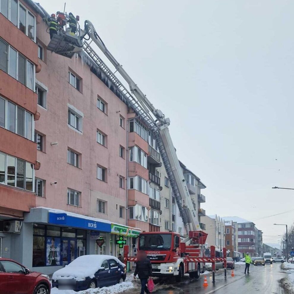 Obligațiile sunt prevăzute de OG nr. 21/2002 și HCL nr. 153/2009, iar nerespectarea acestora poate atrage sancțiuni contravenționale, mai precizează Poliția Locală Bistrița, care este prezentă în teren pentru asigurarea perimetrului de siguranță și acordă sprijin operațional echipelor de intervenție ale ISU, în timpul misiunilor de îndepărtare a țurțurilor formați la streșinile blocurilor, care pun în pericol siguranța publică.