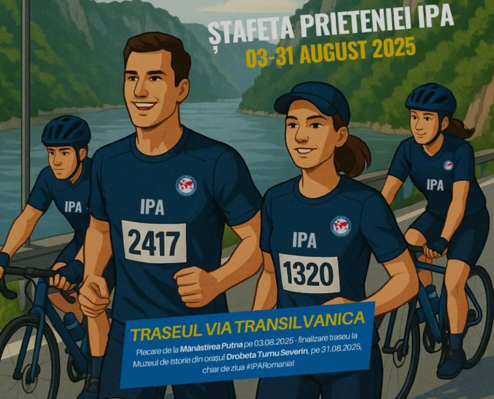 Finalul ștafetei, programat pe 31 august în Drobeta-Turnu Severin, coincide cu Ziua IPA România – un moment simbolic pentru întreaga comunitate. Organizatorii așteaptă cât mai mulți membri IPA și susținători să fie prezenți la linia de sosire, pentru a sărbători împreună spiritul de prietenie care ne unește, într-o atmosferă festivă și plină de emoție.