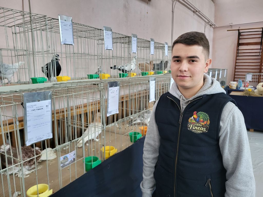 Printre expozanți se află și Fineas Rus din Monariu, elev în clasa a XI-a la Liceul Tehnologic Agricol Bistrița, cel mai tânăr membru al Asociației Columbofile ”Heniu” Bistrița.