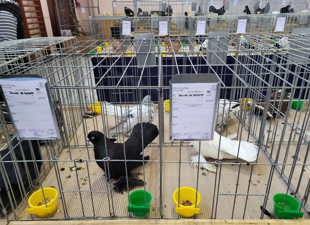 ”Este a 34-a ediție a expoziției după Revoluție, au mai fost și înainte, dar în 1992 a fost prima expoziție după Revoluție. Avem 350 de exponate, în majoritate porumbei, fiindcă noi suntem la bază columbofili. Dintre acestea, peste 80 sunt porumbei din rase românești. Porumbelul cel mai reprezentativ pentru noi este Rollerul de Bistrița, o rasă creată acum 100 de ani chiar aici, pe meleagurile noastre. Avem 24 de exemplare din această rasă în expoziție. Sunt porumbei galbeni, ciocolatii, dungați, cu mai mult de trei culori pe aceeași pasăre, exemplare unicat. Sunt porumbei foarte frumoși, apreciați în țară și peste hotare”, a declarat pentru publicația locală Timp Online, Darius Iușan, președintele organizației.