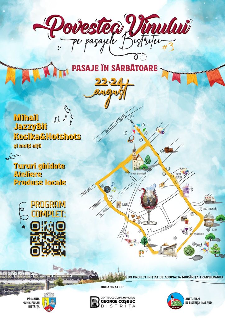 ”Ne dorim ca bistrițenii să-și redescopere orașul, iar prin ochii lor să devină cei mai sinceri și entuziaști ambasadori ai acestuia. Pentru că atunci când ne place ceea ce trăim, ducem vestea mai departe. Hai să ne bucurăm împreună de Povestea Vinului într-un weekend cu gust de cultură și voie bună!”, transmite Primăria Bistrița.