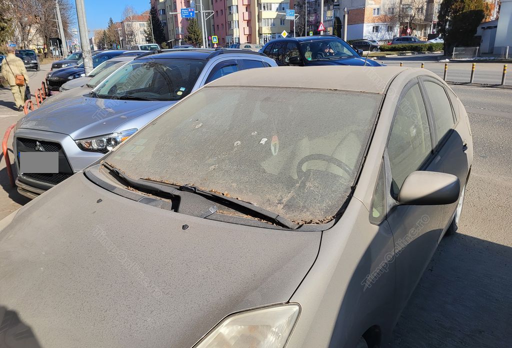 Si totusi, daca ne uitam la toate celelalte masini din fotografii, vedem ca sunt curate. In prima imagine se vede clar ca acea masina prafuita in totalitate nu a fost miscata de acolo (nici spalata) de foarte mult timp (frunzele adunate acolo spun totul). In a doua fotografie, la fel. Cine stie pe unde a circulat, cert este ca au functionat stergatoarele de parbriz.