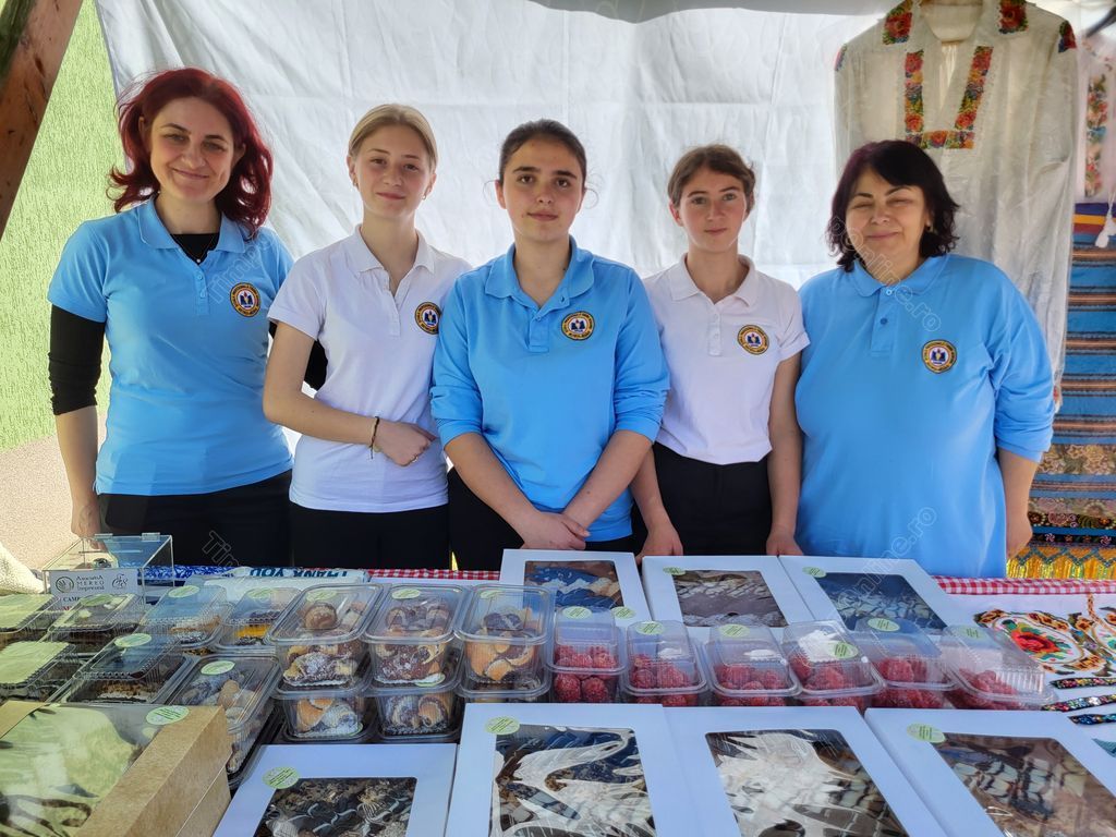 Elevele cu care am stat de vorbă la Târgul de Paște din Țara Năsăudului sunt cu adevărat pasionate de cofetărie. Ne-au spus că le-a plăcut foarte mult să prepare în special Turta cu mere fripte și țucăr ars, o prăjitură cu care au avut succes și la etapa naţională a Concursului ”Culinariada”, ediţia a VI-a, unde au obținut mențiune.