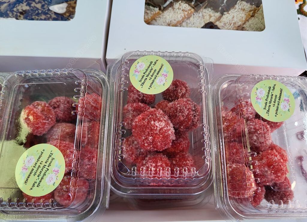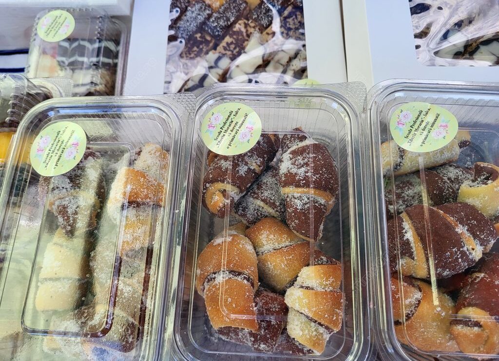 ”La școală avem două calificări cofetar-patiser și ospătar. Elevii de la cofetar-patiser au pregătit 12 sortimente de prăjituri, începând cu Rumba, Tosca, Fanta, București, Petre Roman, Bonti, toate rețetele, unele vechi, dar altele le-am luat și de pe internet. Am mai îmbunătățit și noi, am mai adăugat câte ceva, am mai renunțat la altceva. Am folosit ouă de casă, unt de casă, iar toate cremele le-am făcut din gălbenuș, pe abur. Nu avem creme cu mascarpone și cu prafuri. Inclusiv gemurile și dulcețurile pe care le-am folosit sunt exclusiv de casă, făcute de noi”, ne-a spus directoarea Romana Fetti, mândră de elevii ei care învață să devină cofetari iscusiți, iar unii ajung să se angajeze chiar în patiserii din străinătate.