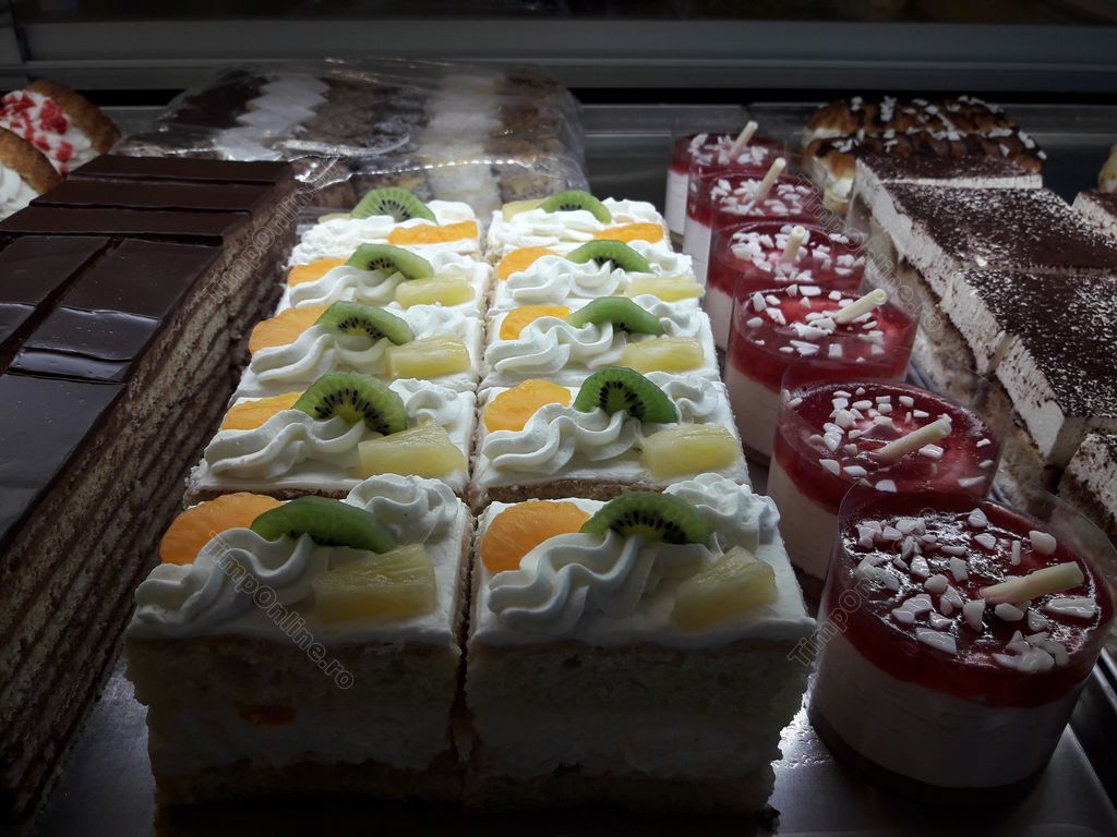 Prăjiturile sunt făcute din ingrediente naturale şi cu creme din gălbenuşuri spumate pe aburi. Găsiţi aici de la diplomat, la savarine, amandine, dar şi ecleruri, profiterol, tiramisu sau macarons.