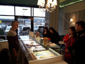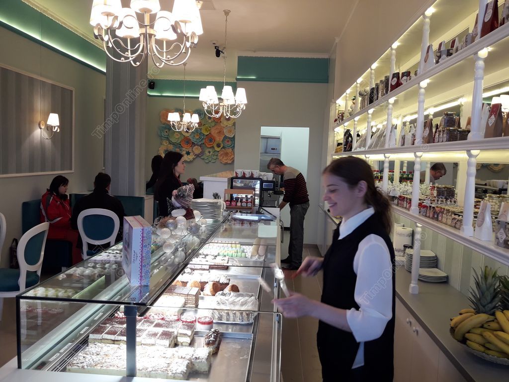 Are măsuţe la care se pot servi prăjituri, cafea şi sucuri atât în interior, cât şi în exterior, pentru fumători. Ambianţa este extrem de plăcută şi caldă.