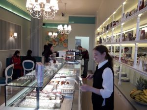 Clienţii pot alege dintr-o gamă largă de prăjituri toate proaspete şi făcute cu ingrediente naturale în laboratoarele “Mon Jardin Patisserie” de la Năsăud după reţetele Narcisei Stoian.