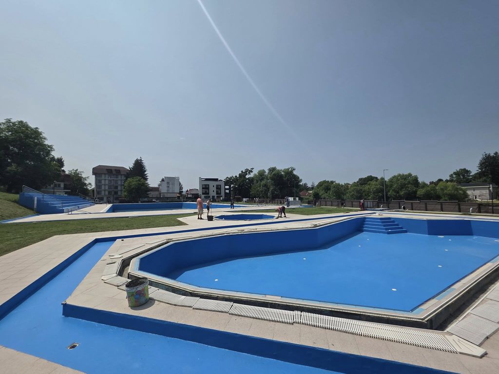 În zilele următoare, suprafețele proaspăt vopsite, dar și întreaga zonă, vor fi curățate de reziduuri. Urmează umplerea bazinelor cu apă și aplicarea tratamentelor necesare pentru echilibrarea pH-ului și clorinarea corespunzătoare a apei.