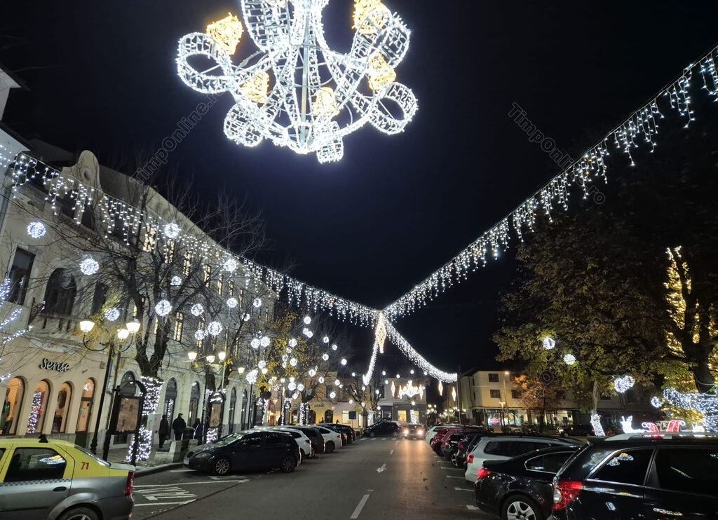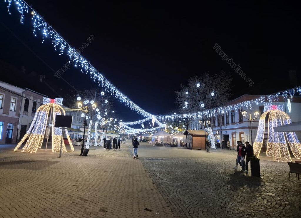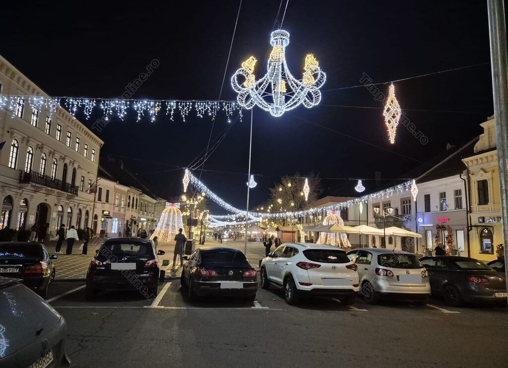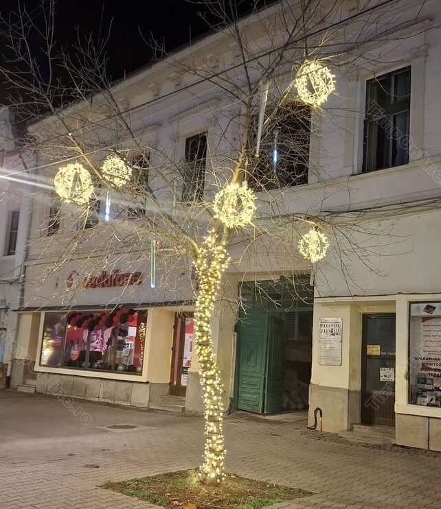 De departe cele mai interesante imagini sunt batranii CASTANI si TEII din Piata Centrala si Pietonal cu luminitele infasurate pe trunchiul lor si sferele din coroane.