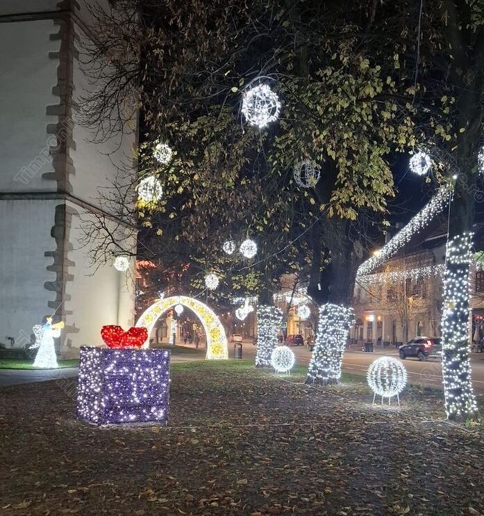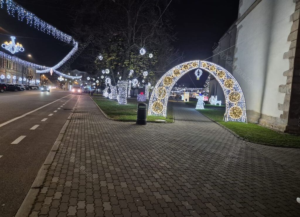 Pentru sărbătorile de iarnă, au fost aduse și amplasate ghirlande, șiruri luminoase și o serie de figurine și elemente de iluminat ornamental: arcade, candelabre, globuri, lumânări, îngerași, fundițe, clopoței, brăduți, reni, sănii, cutii de cadouri.