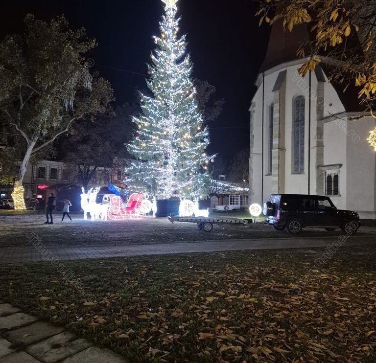 În Piața Centrală, lângă Biserica Evanghelică, a fost împodobit un brad natural de mari dimensiuni.