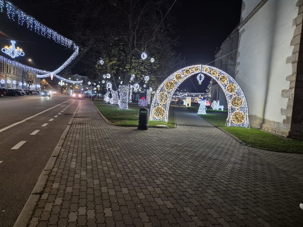 Pentru sărbătorile de iarnă, au fost aduse și amplasate ghirlande, șiruri luminoase și o serie de figurine și elemente de iluminat ornamental: arcade, candelabre, globuri, lumânări, îngerași, fundițe, clopoței, brăduți, reni, sănii, cutii de cadouri.
