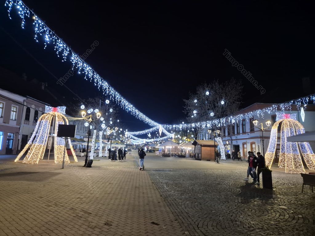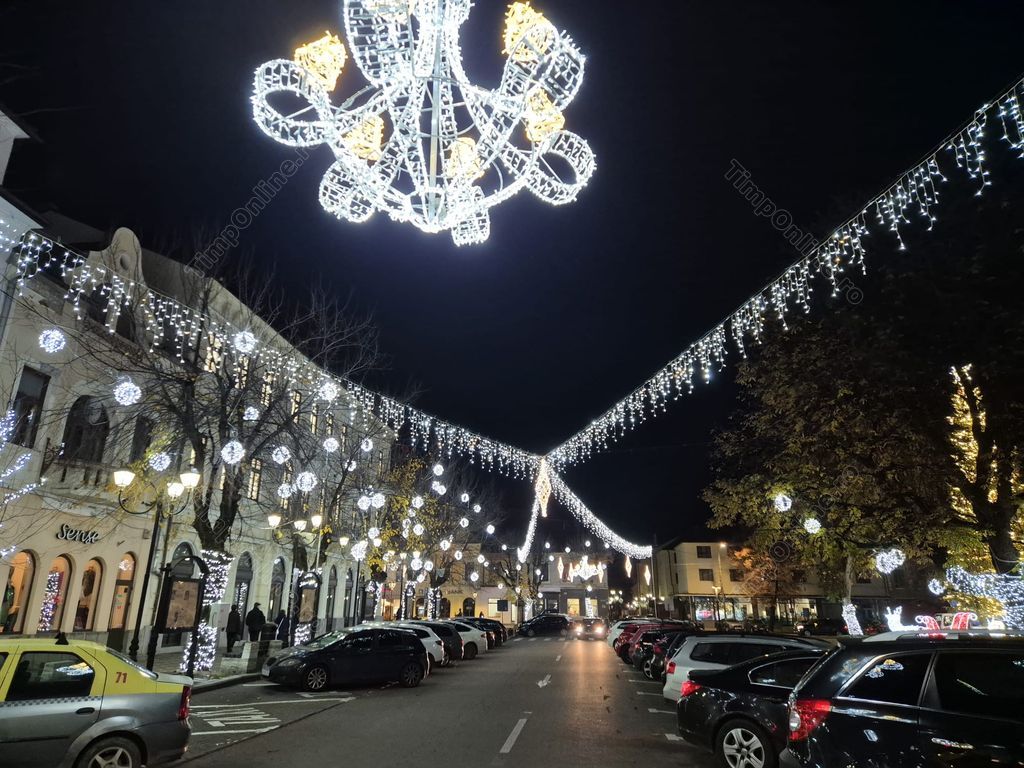 De departe cele mai interesante imagini sunt batranii CASTANI si TEII din Piata Centrala si Pietonal cu luminitele infasurate pe trunchiul lor si sferele din coroane.