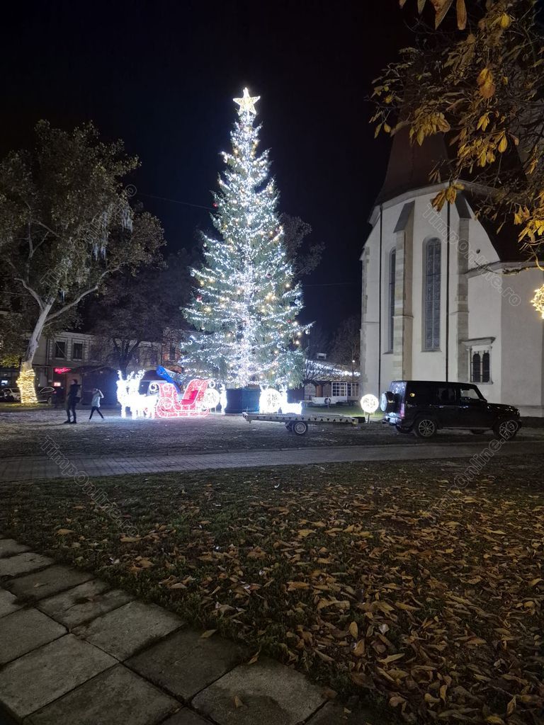 În Piața Centrală, lângă Biserica Evanghelică, a fost împodobit un brad natural de mari dimensiuni.