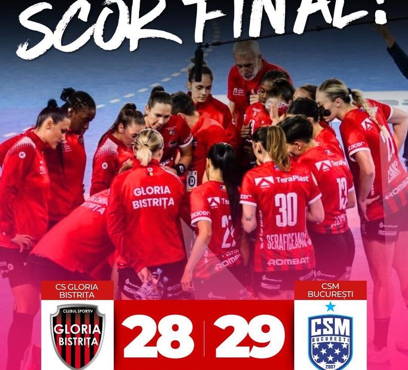 Gloria Bistrița a suferit prima înfrângere în acest sezon al Ligii Florilor la handbal feminin, pe teren propriu, în fața campioanei CSM București, într-un meci în devans din etapa a 7-a.