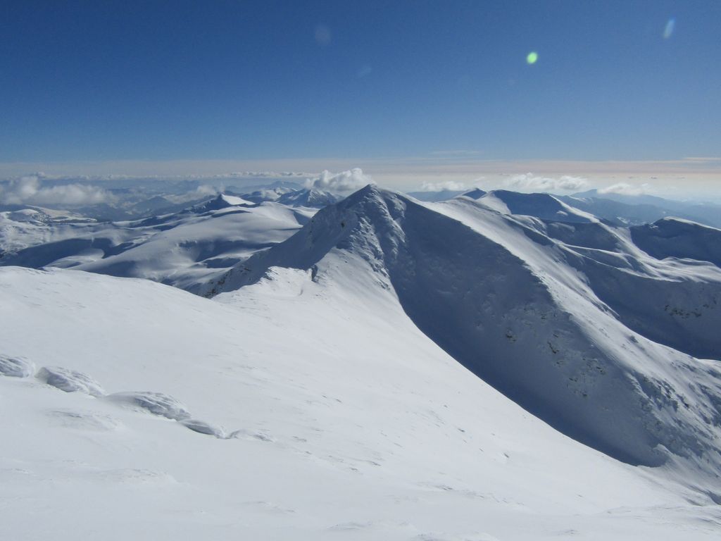 Un strat nou de zăpadă s-a depus pe Munţii Rodnei, ceea ce face ca peisajul să fie unul mirific. O dovedesc fotografiile realizate de Albert Gavrilă, care a urcat pe cel mai înalt vârf din Munţii Rodnei, Pietrosul, la 2303 metri înălţime.