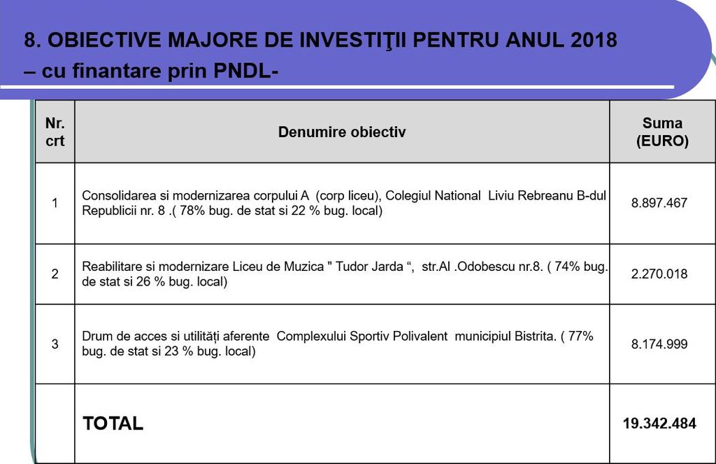 ”Sunt niște discuții la acest proiect, în sensul că serviciul juridic de la Ministerul Dezvoltării nu interpretează administrarea domeniului privat de către public finanțabilă pe PNDL. Ne-am susținut punctul de vedere, am explicat. Lucrurile sunt cât se poate de clare, reabilităm o școală care este folosită de 60 de ani de către comunitatea bistrițeană, o mai folosim încă 100 de ani cel puțin cât avem contractul de administrare, un contract în confirmitate cu legislația. În Codul Civil administrarea este tratată la două capitole și ei spun că finanțează doar administrarea pe al doilea capitol. Nu cred că este în regulă. Așteptăm un document scris de la minister ca să știm ce facem mai departe. Noi avem două variante: să cumpărăm cu 1 leu clădirea CNLR, dar nu șltiu dacă proprietarul, Parohia Evanghelică, va fi de acord să facă această vânzare, sau să-i dăm în judecată. Mai avem o experiență de acest fel, cu Centrul Comunitar pentru Tineret. Ni s-a refuzat și am câștigat în instanță, care i-a obligat să ne finanțeze”, a declarat primarul Ovidiu Crețu.