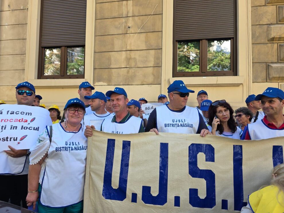 Cadre didactice din Bistrița-Năsăud, membre ale Federației Sindicatelor Libere din Învățământ (FSLI), au protestat astăzi în fața Ministerului Educației și Cercetării, nemulțumite de comasarea unităților de învățământ, creșterea normei didactice cu două ore, a efectivului de elevi în clase, creșterea obligației de catedră pentru directori și inspectori etc.