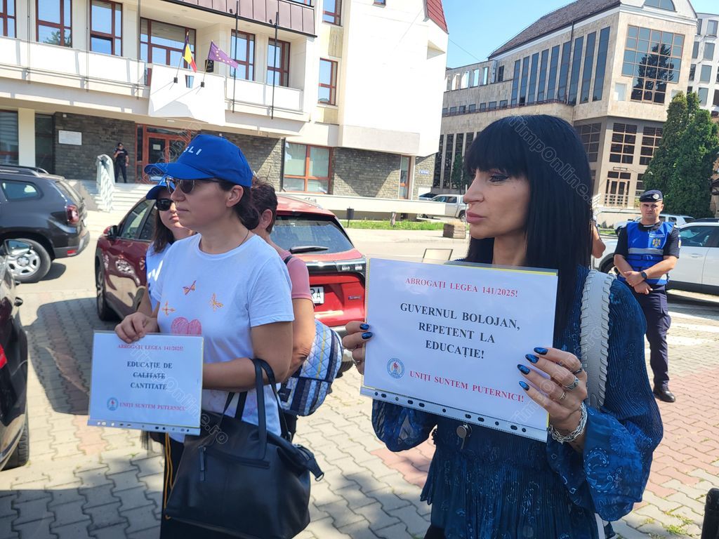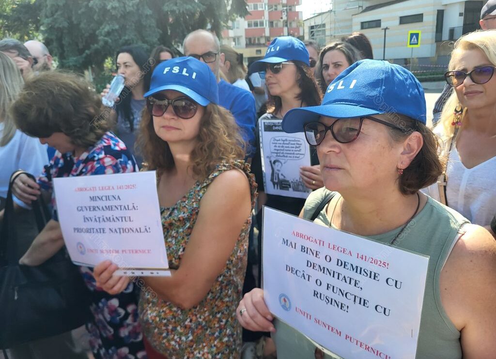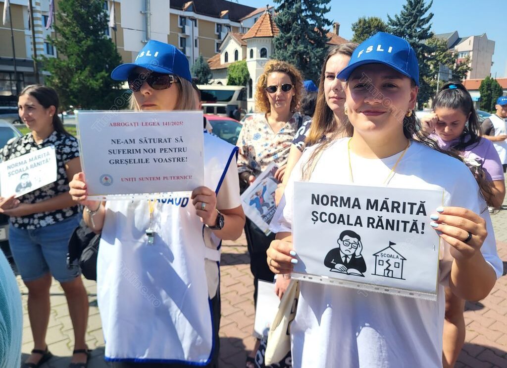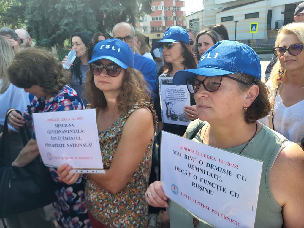Peste o sută de sindicaliști care fac parte din Uniunea Județeană a Sindicatelor Libere din Învățământ (UJSLI) au pichetat astăzi, timp de o oră, Instituția Prefectului, numulțumiți de prevederile Legii 141 care vizează educația. Protestatarii au afișat pancarte pe care au scris ”Normă mărită, școală rănită!”, ”Educația este investiție, nu o cheltuială”.