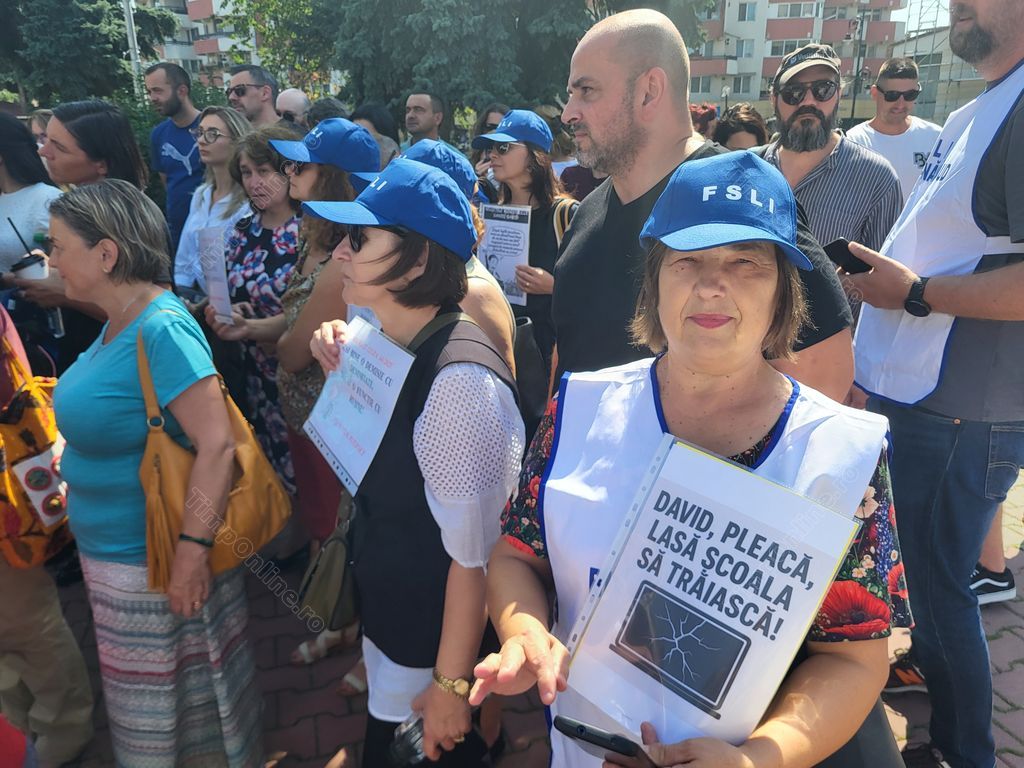 Protestatarii i-au cerut și demisia ministrului Daniel David. Pe o pancartă au scris: ”David, pleacă! Lasă școală să trăiască!”, iar pe alta ”Mai bine o demisie cu demnitate decât o funcție cu rușine!”