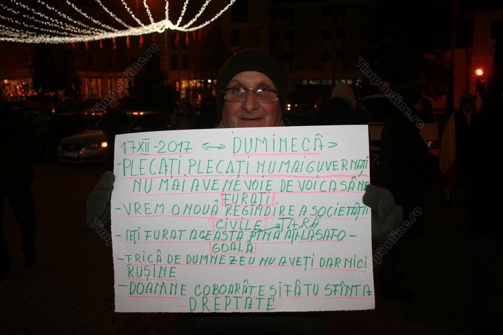 Tânărul se numeşte Nicolae Pavelean, are 25 de ani, şi a relatat pentru Timp Online ce l-a determinat să vină la protest şi să transmită acest mesaj : “Nu am fost la vot, într-adevăr, pentru că nu aveam nişte opţiuni bune. Ce nu am realizat la momentul respectiv a fost că unele dintre partidele astea nu numai că nu vor să facă nimic, dar vor să facă ceva rău Justiţiei şi democraţiei din România. Eu cred că modificările aduse legilor Justiţiei îi favorizează pe cei care au probleme penale din clasa politică, în primul rând. Sunt şi anumite modificări care ne-ar putea afecta şi pe noi, oamenii de rând. Am realizat că cei 61% dintre români care nu au votat şi-au spus cuvântul şi ei, indirect. Din păcate, m-am numărat şi eu printre ei. Am venit la proteste în fiecare duminică. Din păcate, sunt foarte puţini tineri care vin la aceste proteste. Cred că le lipseşte motivaţia văzând că politicienilor de la putere nu le pasă de ce vrem să spunem noi. În al doilea rând, cred că e vorba şi de comoditate, acelaşi lucru ca şi la vot, iar în al treilea rând cred că nu realizează cât de gravă e situaţia în care se află România astăzi. Tocmai de aceea am scris şi mesajul: Acum ori niciodată! Momentul în care se află România acesta este, exact cum spune şi imnul ţării noastre. Este ori acum, ori niciodată. Eu simt că e de datoria mea să-mi spun cuvântul. Cu regretul că nu am fost la vot, cred că cel puţin acum am datoria să vin aici şi să-mi spun cuvântul”.
