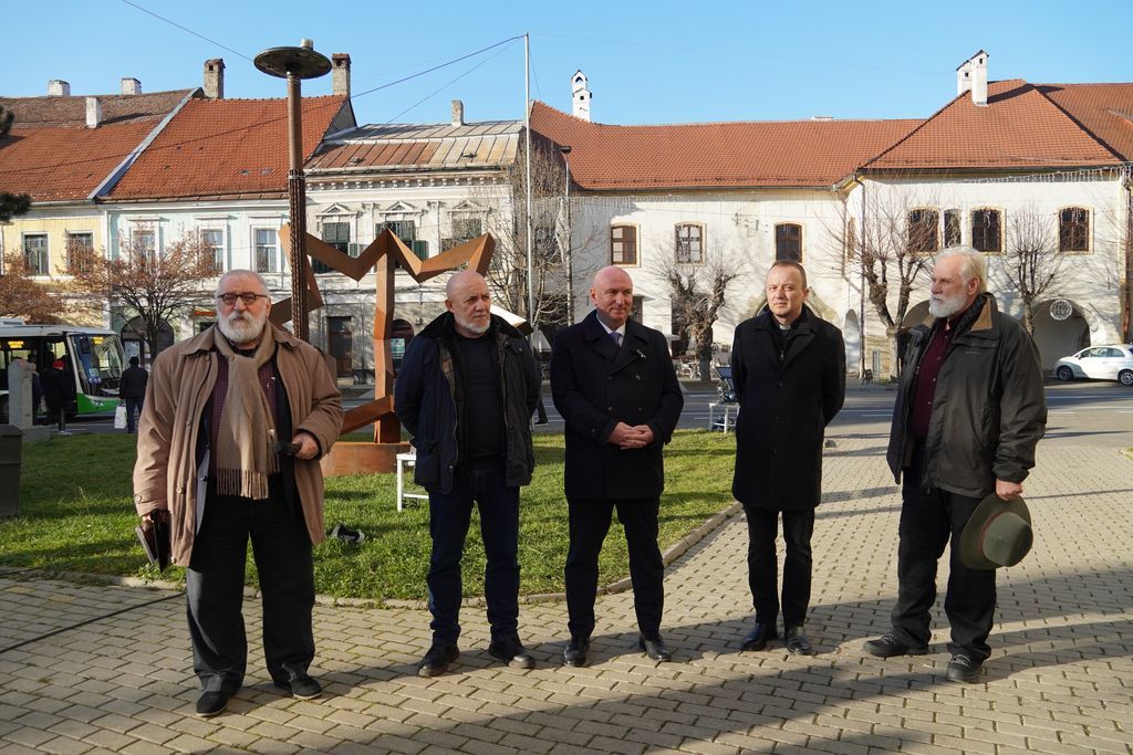 ”Veșmânt”, ”Steaua Magilor”, ”Cuiburi”, ”Marele Pelican”, ”Mâini spre Slavă”, ”Cuiburi spre Cer”, ”Noul Legământ” și ”Pelican pe Plaur” sunt cele ”Opt puncte de convergență” pe care sculptorul Radu Feldiorean le-a expus în piațeta din jurul Bisericii Evanghelice din Bistrița, o invitație la rugăciune și meditație în aceste zile premergătoare Nașterii Domnului.