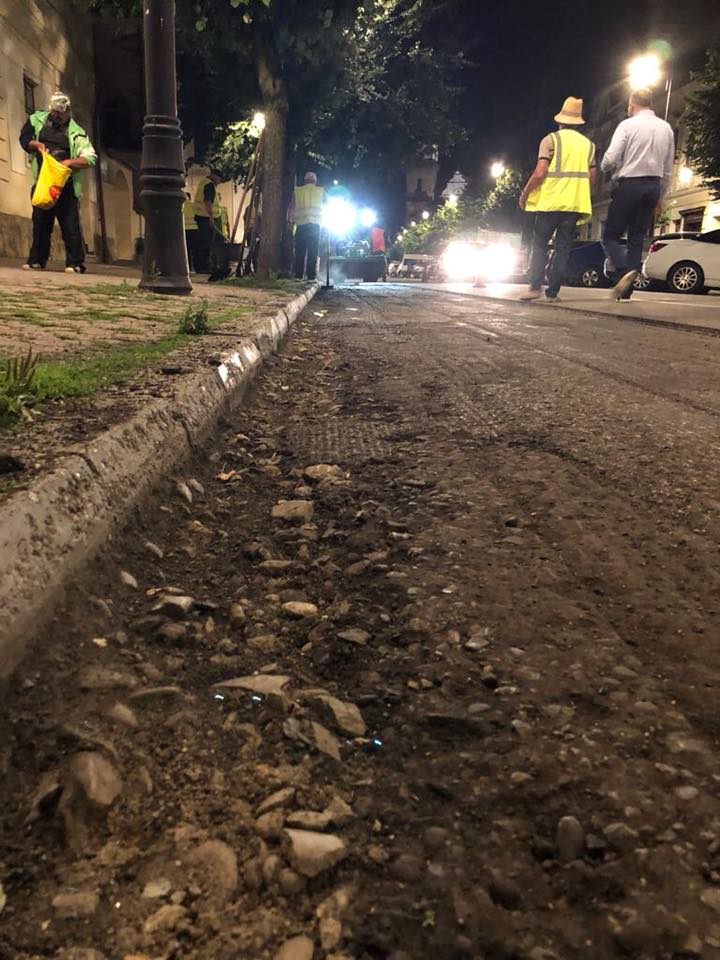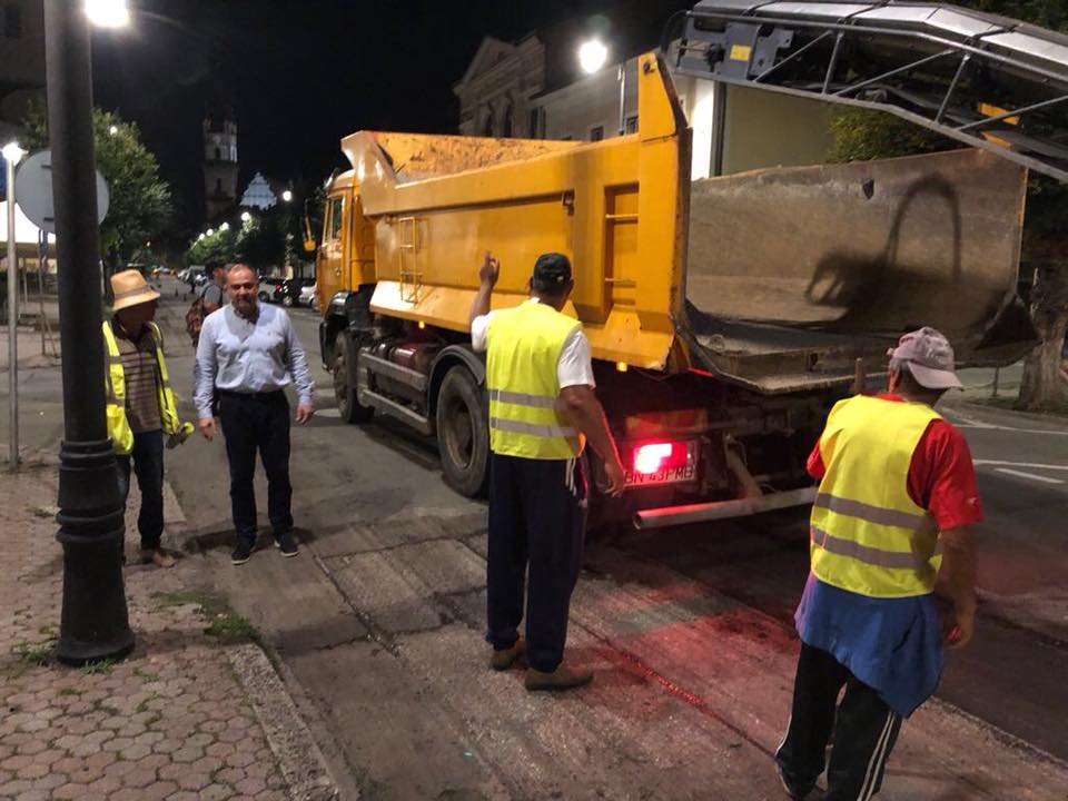 Reparații de noapte pe străzile din Bistrița. ”Lucrările avansează într-un ritm bun” (FOTO-VIDEO)