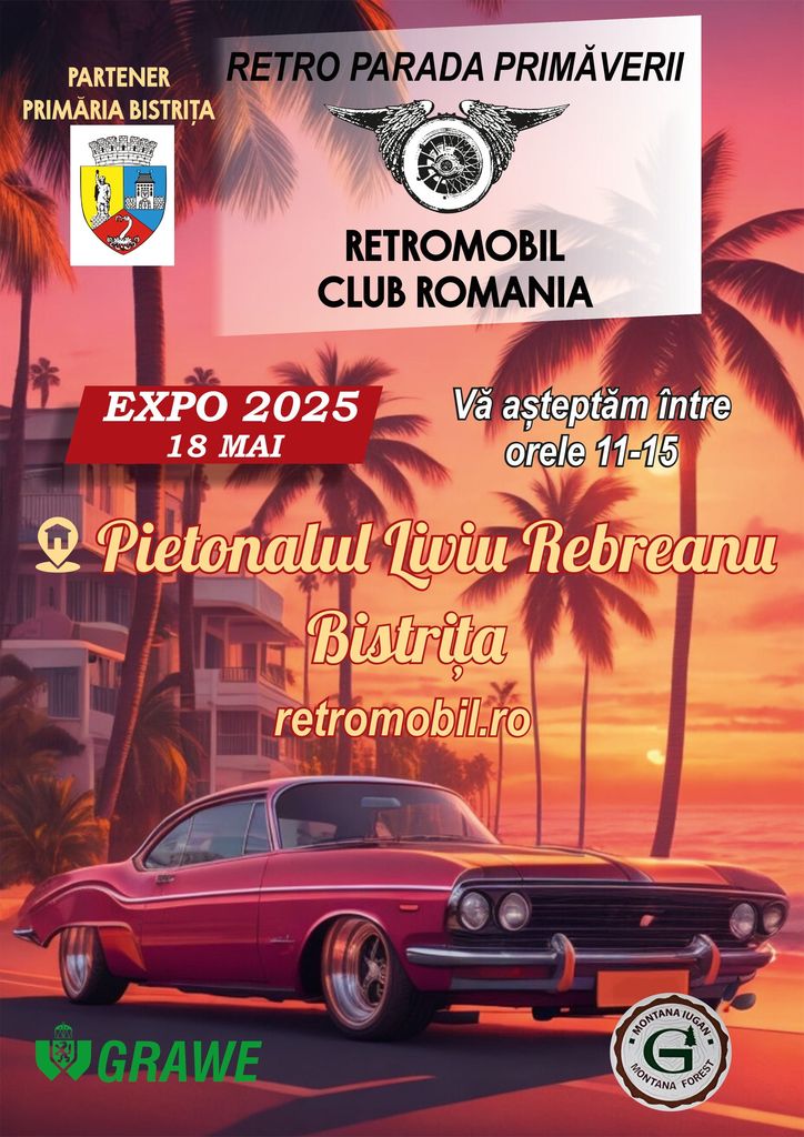 Retro Parada Primăverii 2025, eveniment organizat de Retromobil Club România – Filiala Bistrița-Năsăud, va avea loc pe în zona pietonală Liviu Rebreanu din Bistrița duminică 18 mai.