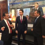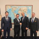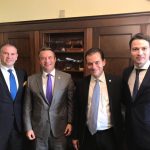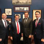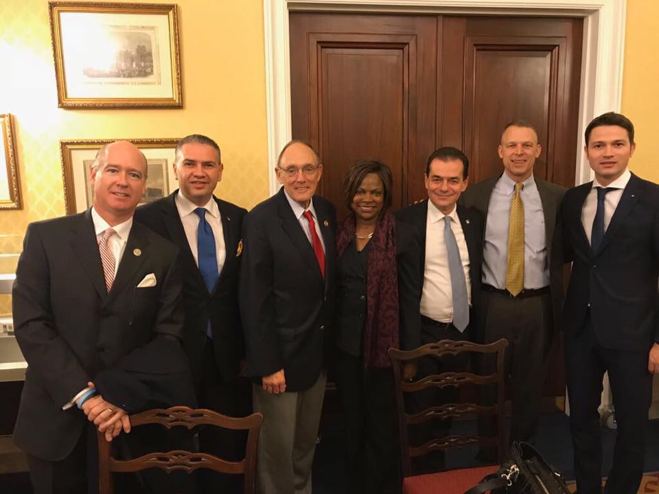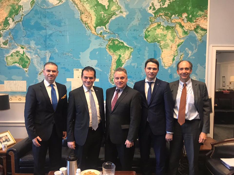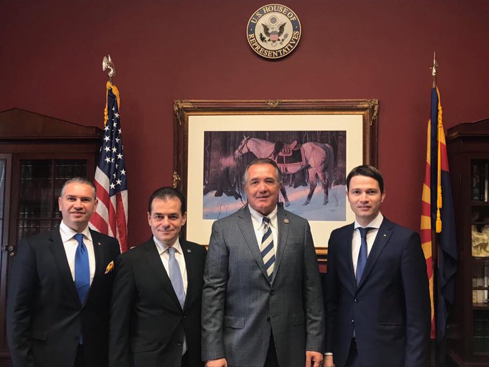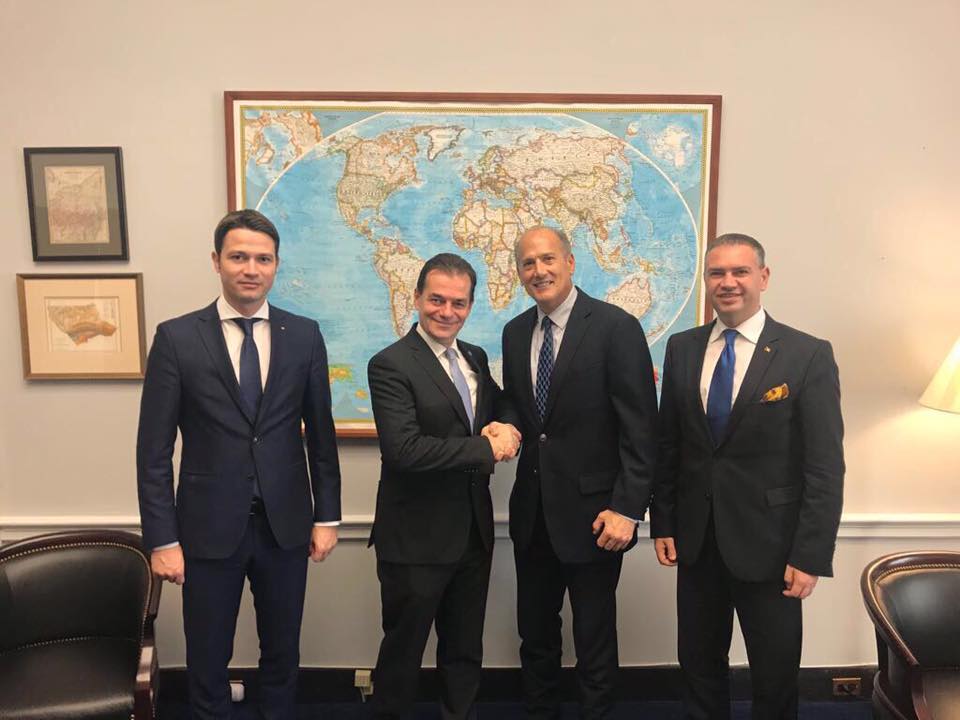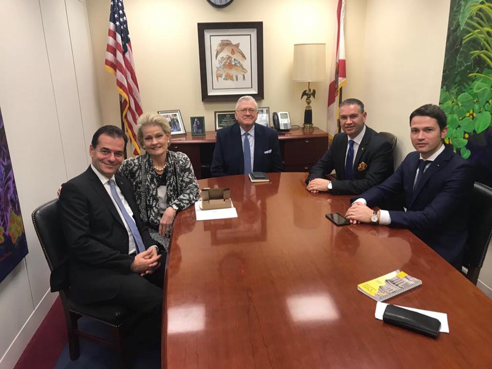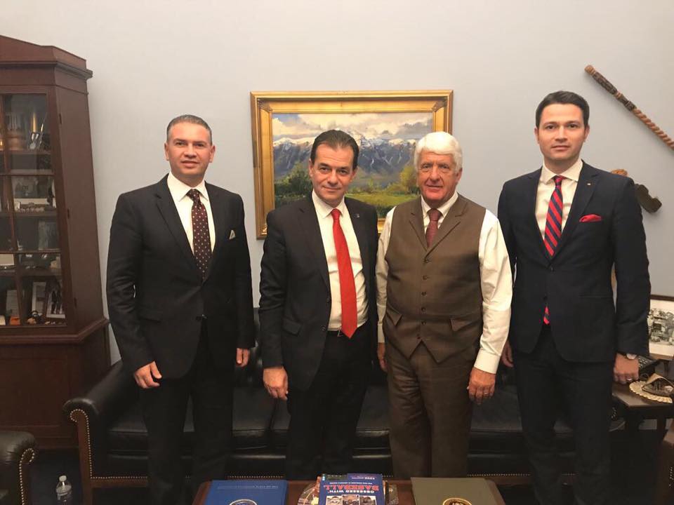 ”Washington DC – Întâlnire cu Ted Cruz. Senatorul Ted Cruz, fost candidat la președinția SUA, este unul dintre cei mai influenți lideri republicani. A fost o deosebită plăcere de a prezenta situația politică din regiune și de a discuta despre dezvoltarea parteneriatului strategic pe dimensiunea economică. A răspuns favorabil invitației noastre, de a efectua o vizită în România, într-un viitor apropiat. Am fost impresionați de tabloul imens din biroul său senatorial, reprezentând discursul lui Ronald Reagan în fața zidului Berlinului, simbolul prăbușirii regimurilor totalitare din Europa de Est”.