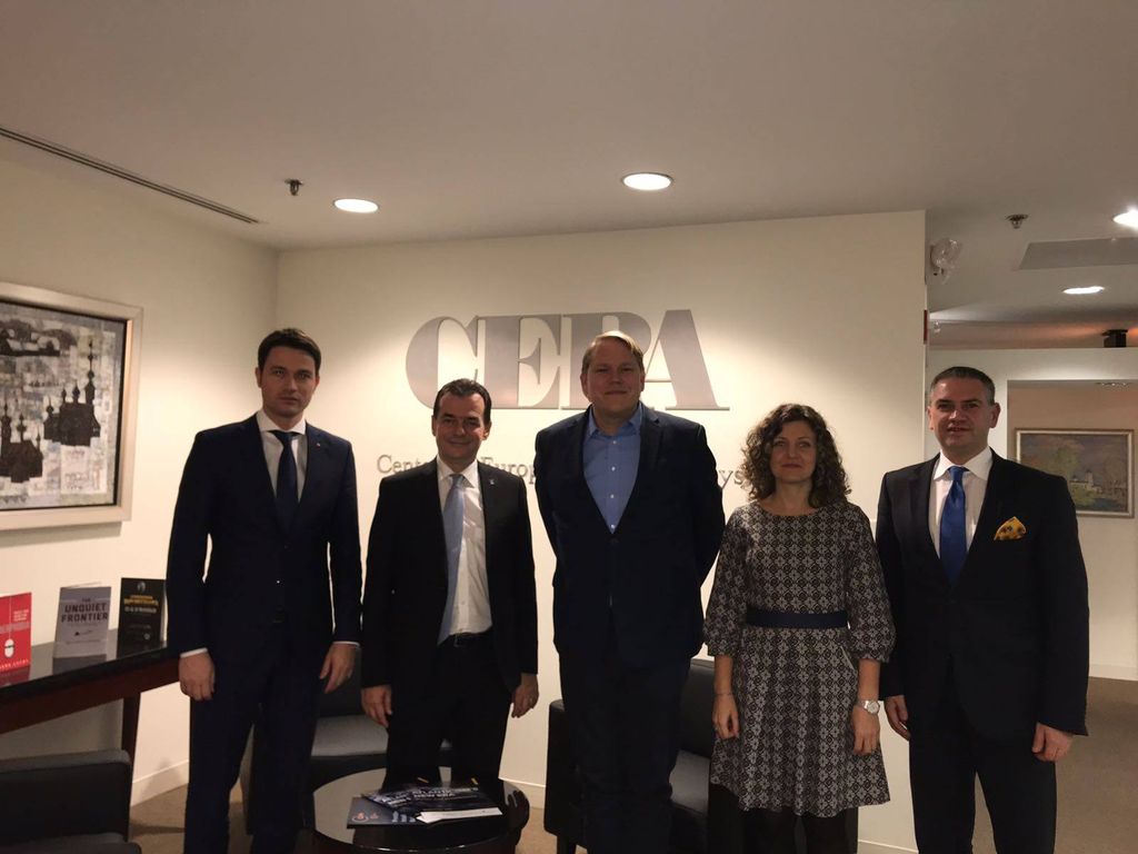 ”CEPA, Washington DC – singurul think-thank specializat pe analiză și prognoză pentru Europa Centrală și de Est. În fapt, fostul președintele CEPA, Wess Mitchell, a fost cooptat de către Administrația Trump datorită experienței și expertizei sale, pentru a fi Subsecretar de Stat pentru Europa de Est, înlocuind-o pe predecesoarea administrației democrată, Victoria Nuland. Discuția a vizat atât teme importante de politica externă, precum acțiunile Rusiei în regiune, evoluțiile țărilor din zona (Bulgaria, Ungaria, Turcia, Moldova, Ucraina, etc.), trecerea în revistă a politicii SUA față de diverse aspecte majore ce au implicații în parteneriatul strategic, cât și posibilele răspunsuri ale altantișilor în fața provocărilor din domeniul securității”.