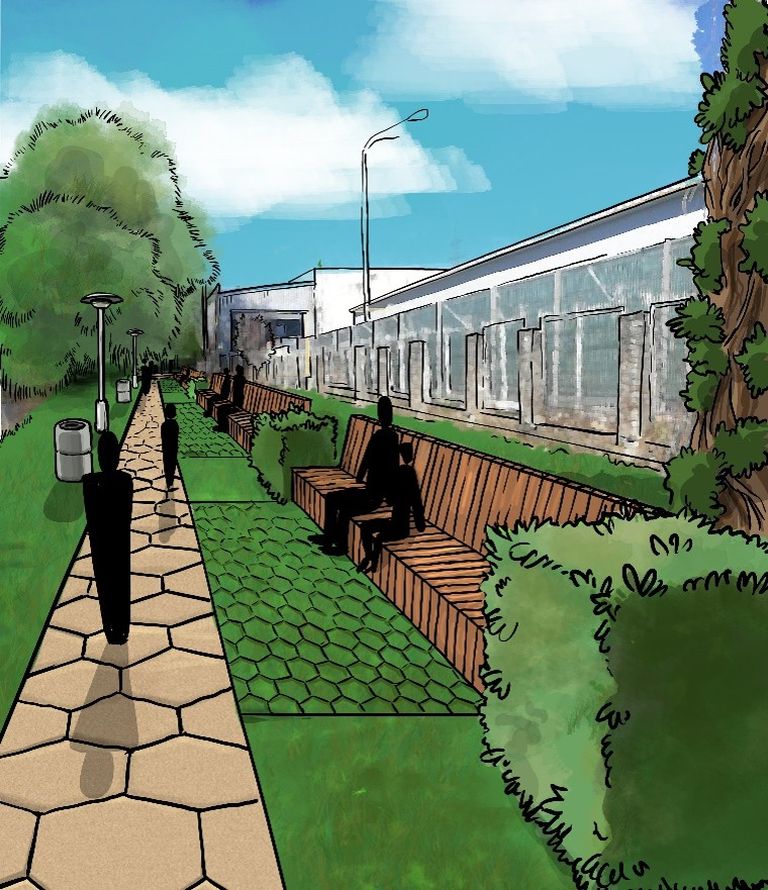 - realizare de spații verzi care vor fi în întregime circulabile, realizate dintr-un sistem de stabilizare cu profiluri fagure pentru iarbă;