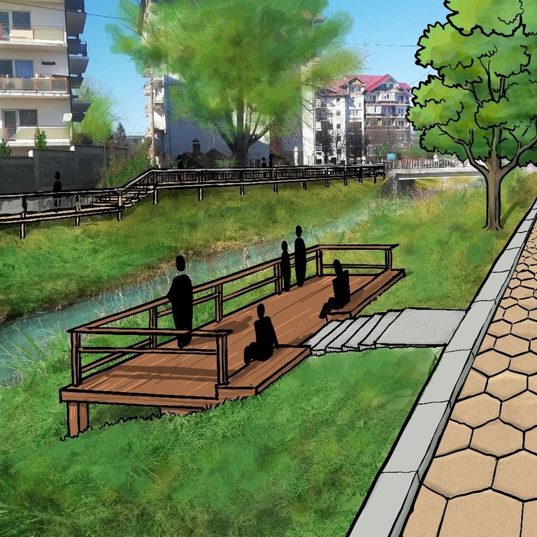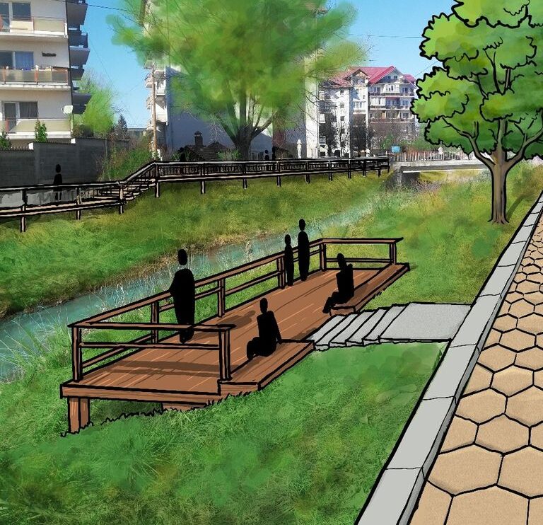 - montare bănci și coșuri de gunoi pe întreaga zonă, cu precădere în zonele de interes nou create;