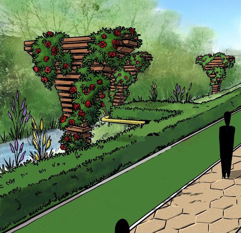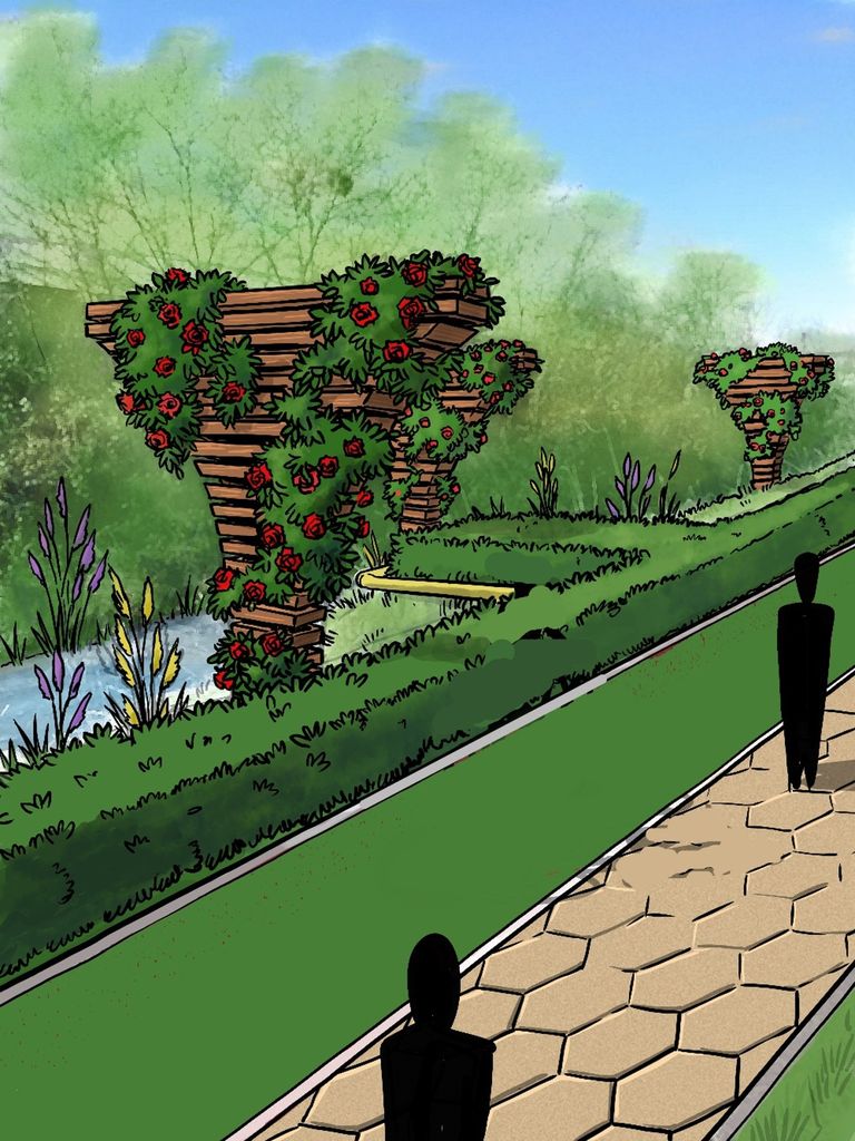 - realizarea de spaliere de vegetație în vederea mascării țevilor de gaze și apă. Acestea vor fi realizate din lemn și se va planta vegetație cățărătoare pe ele;