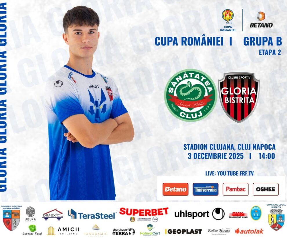 Gloria Bistrița (locul 19 în Liga 2) va evolua în deplasare în runda a 2-a din Grupa B a Cupei României la fotbal. Adversară va fi Sănătatea Servicii Publice Cluj-Napoca (locul 4 în Seria 8 a Ligii 3).