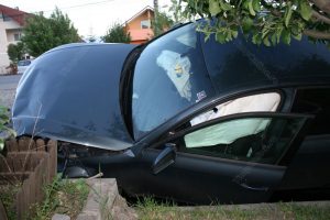 (FOTO) Şanţurile adânci şi betonate de o parte şi de alta a DN 17, şi care nu sunt deloc protejate de parapete, continuă să facă victime. Trei tineri şi-au făcut maşina praf şi au ajuns la spital după ce şoferul a pierdut controlul volanului şi a ajuns cu maşina într-unul din şanţurile de pe raza localităţii Unirea.