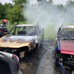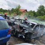 (FOTO-VIDEO) Șapte autoturisme au fost afectate de un incendiu care a izbucnit în parcarea unui service auto din orașul Năsăud.
