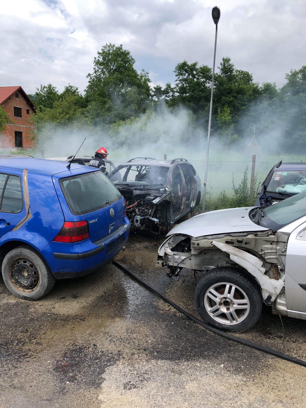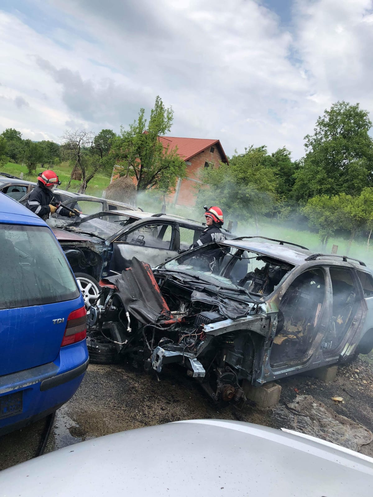 În momentul în care pompierii năsăudeni au ajuns la locul indicat, incendiul se manifesta generalizat, la mai multe autoturisme. S-a acționat pentru localizarea și lichidarea rapidă a focarelor și protejarea celorlalte autoturisme parcate foarte aproape (în parcarea respectivă sunt zeci de mașini). În total au fost afectate de incendiu 7 autoturisme, dintre care trei în proporţie de peste 90%, două în proporţie de 40-50%, iar alte două în proporție de 15-20%, a precizat ISU Bistrița.