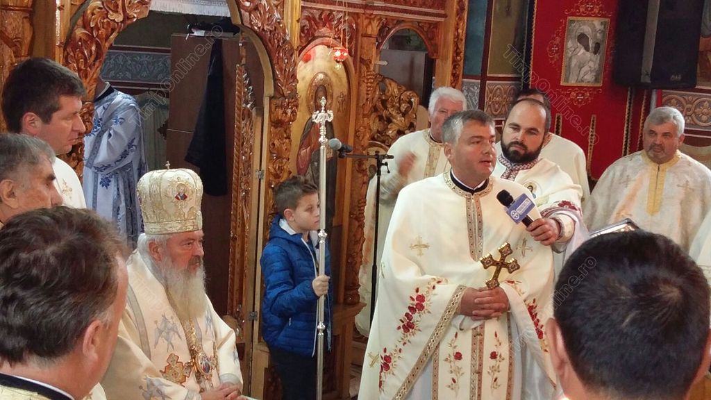 Sute de credincioşi din comună au participat la liturghia arhierească şi s-au rugat împreună cu preoţii. La finalul slujbei, IPS Andrei l-a felicitat pe preotul Florin Cora pentru activitatea depusă în parohie din 2000 până în prezent, adică de 17 ani.