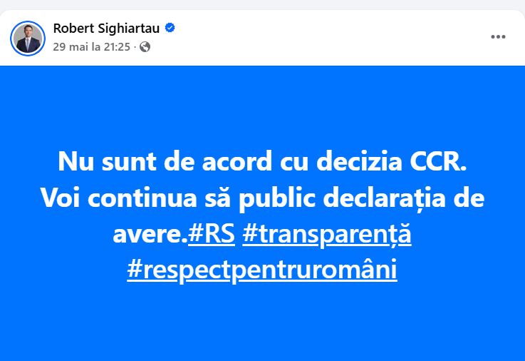 În luna mai, când CCR a anunțat că secretizează declarațiile de avere ale funcționarilor, demnitarilor și rudelor că nu este de acord cu asta și va continua să își publice declarația de avere.