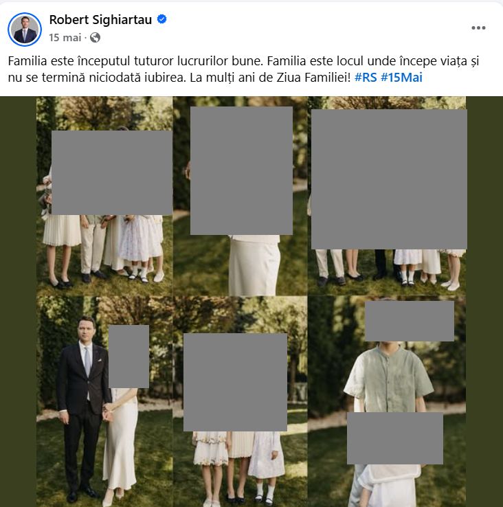 În aparițiile sale publice, Robert Sighiartău folosește ca laitmotiv ”familia”, pe care o expune pe pagina sa de politician în zeci de fotografii, deși, conform GDPR, imaginile copiilor sunt considerate date cu caracter personal. Minorul are dreptul la viață privată și imagine. Chiar dacă este mic și nu își exprimă dezacordul, acesta poate contesta mai târziu publicarea imaginilor.