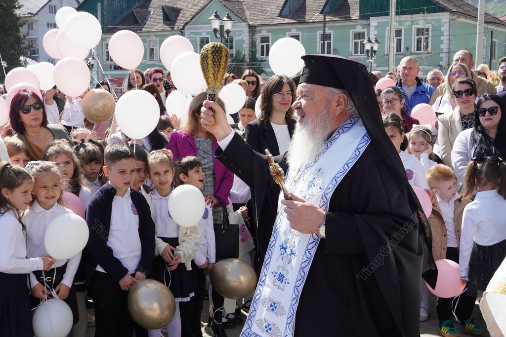 Pe perioada lucrărilor, elevii au ținut cursuri în șase locații din oraș, în două schimburi, așa că astăzi a fost un moment de bucurie pentru toți să se întoarcă în școală. Împreună cu părinții și profesorii, au ascultat slujba oficiată de Mitropolitul Andrei și discursurile politicienilor prezenți la eveniment. În sălile de clasă, fiecare a găsit pe bancă un pachețel cu dulciuri.