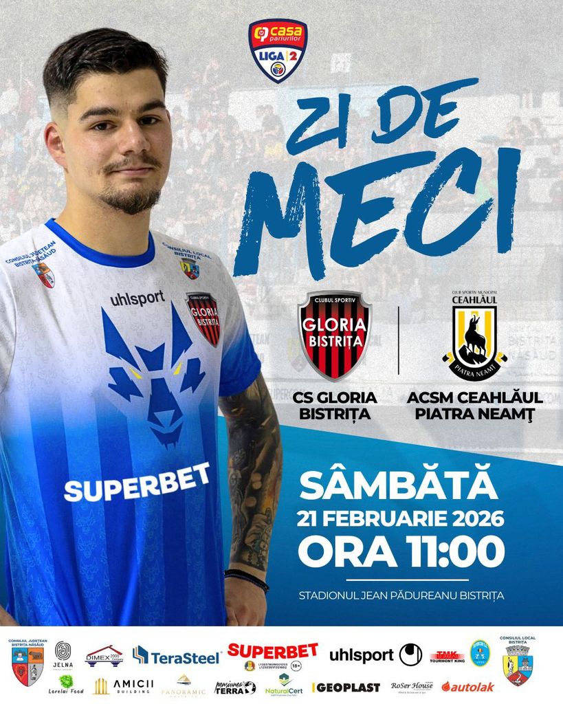 Liga 2 la fotbal se reia la sfârșitul acestei săptămâni cu etapa a 18-a. Gloria Bistrița (locul 17) va juca pe teren propriu cu Ceahlăul Piatra Neamț (locul 15).