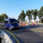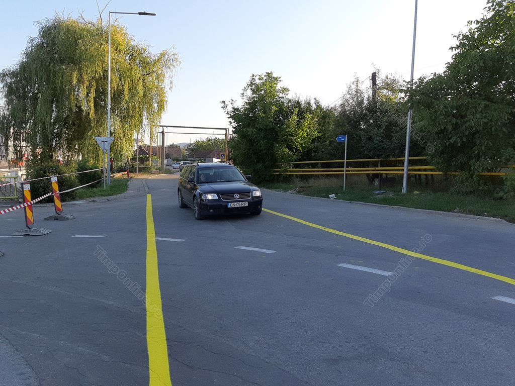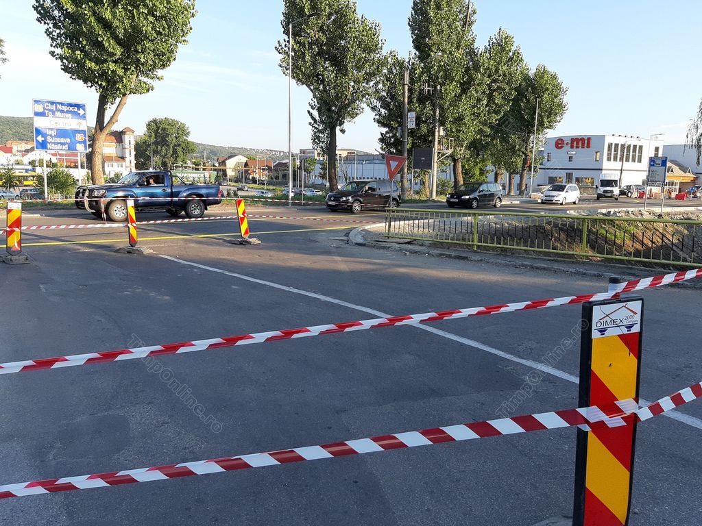 (FOTO) Noul sens giratoriu de la intersecţia străzilor Tărpiului, Drumul Cetăţii şi Livezi a fost montat provizoriu, totodată fiind trasate cu galben marcajele, semn că lucrările de peste 800.000 de euro se apropie de final. Vineri seara, muncitorii de la Dimex 2000 Company SRL au închis și circulația peste podul de lângă capelă și au marcat cu linie continuă zona, semn că pe aici nu se va mai trece, trafiocul fiind deviat pe noul pod.