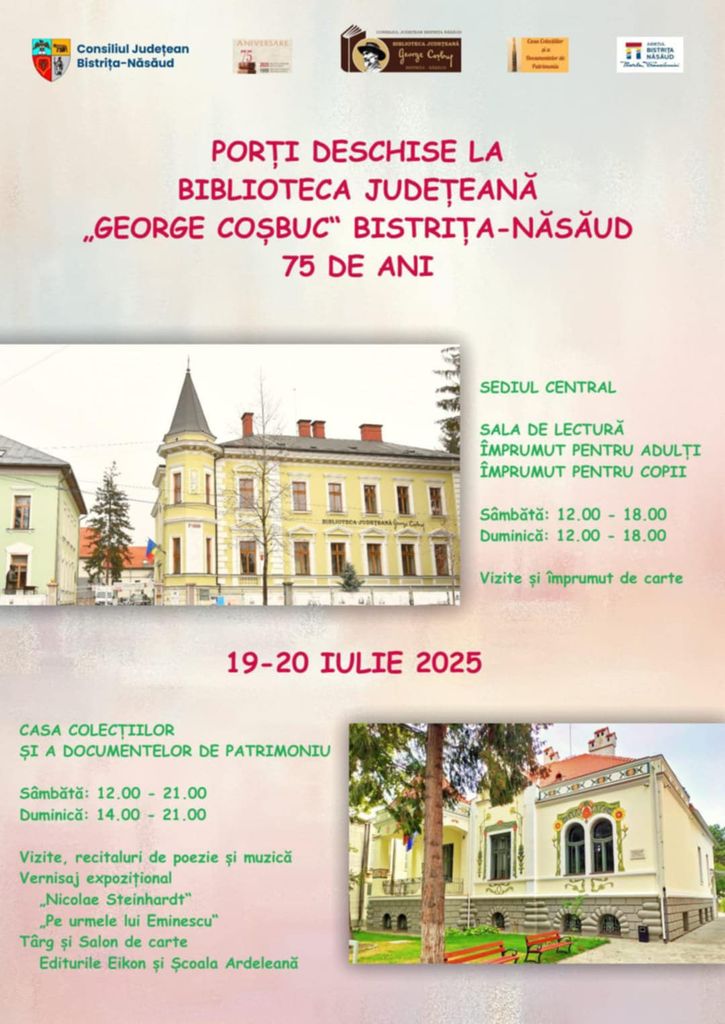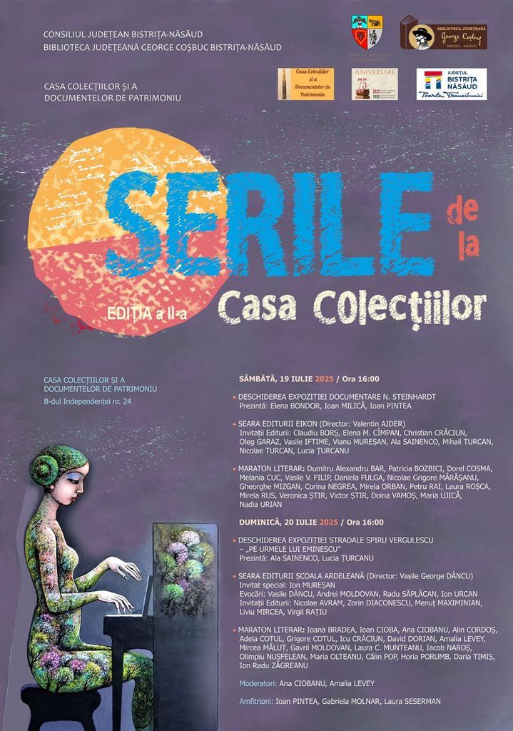 Biblioteca Județeană ”George Coșbuc” organizează ”Serile de la Casa Colecțiilor”, ediția a II-a, în 19 și 20 iulie, la Casa Colecțiilor și a Documentelor de Patrimoniu de pe bd. Independenței din Bistrița.