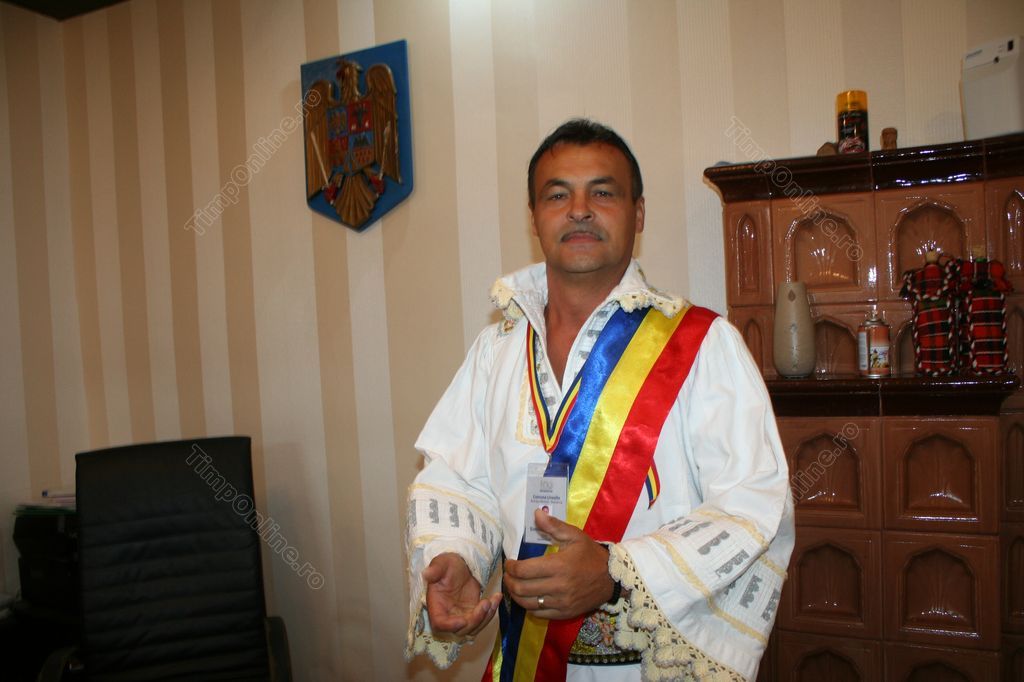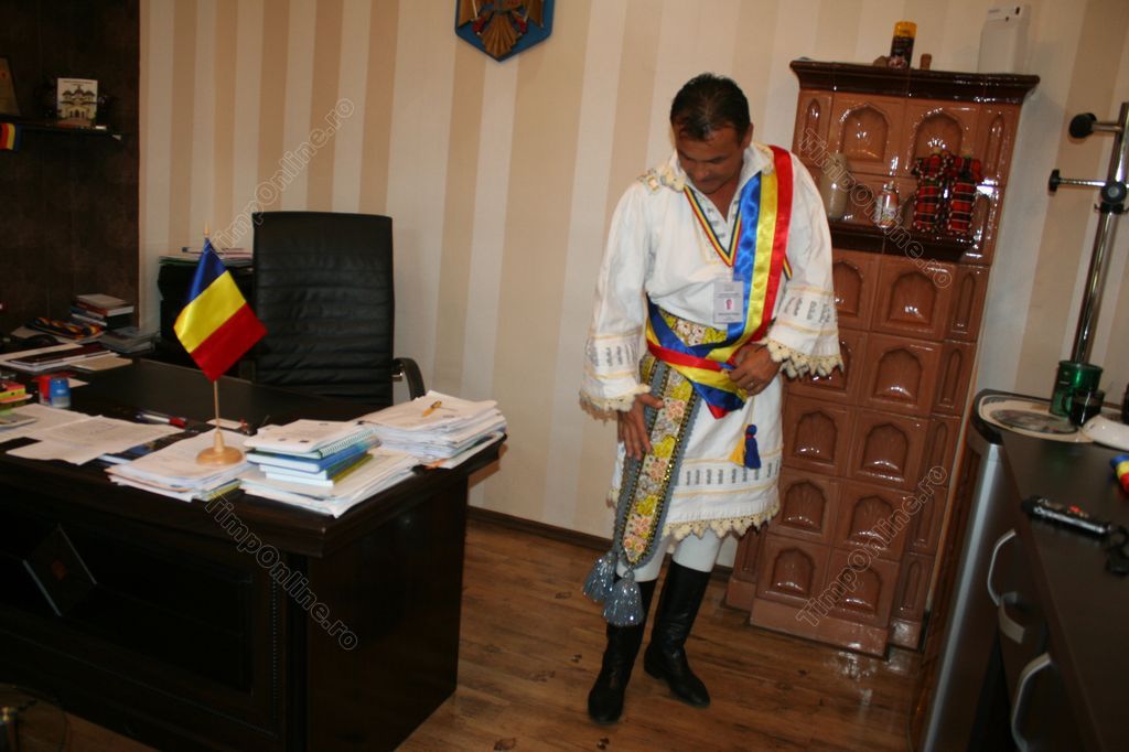 Primarul însuşi s-a îmbrăcat cap-coadă în port popular. El poartă o cămaşă veche de 70 de ani, cizme, iţari, brâu cu două petale şi cănaci cu mărgele şi curea.
