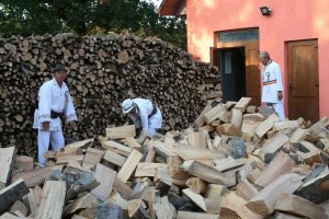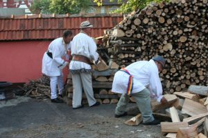 (FOTO) De la muncitorii care sparg lemne în curte, până la cei din birouri, toţi angajaţii Primăriei Livezile, în frunte cu primarul, au venit la serviciu îmbrăcaţi în costume populare vechi.