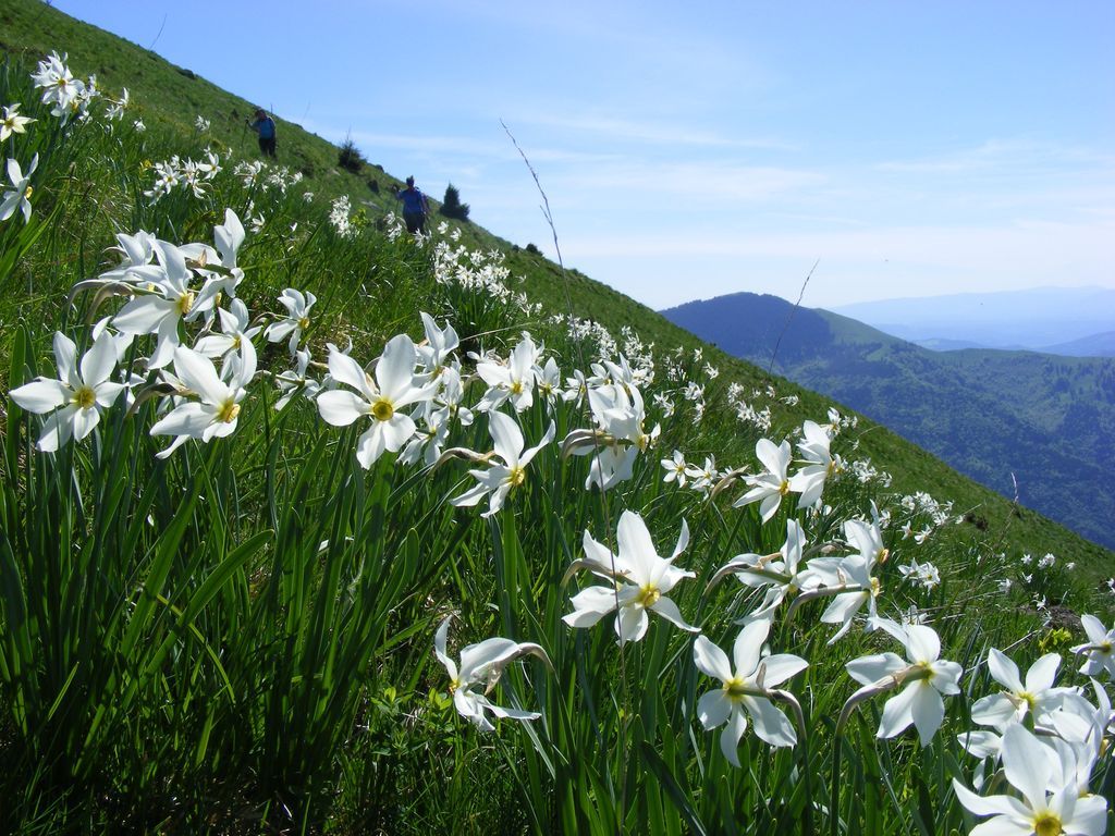 (FOTO-VIDEO) Sezonul de înflorire a narciselor sălbatice din Munţii Rodnei se apropie de sfârşit. “Posibil să fi fost ultimul week-end în care le-am mai putut admira”, spune Albert Gavrilă, care a fost să le vadă sâmbătă împreună cu mai mulţi prieteni, urcând pe la Valea Vinului.