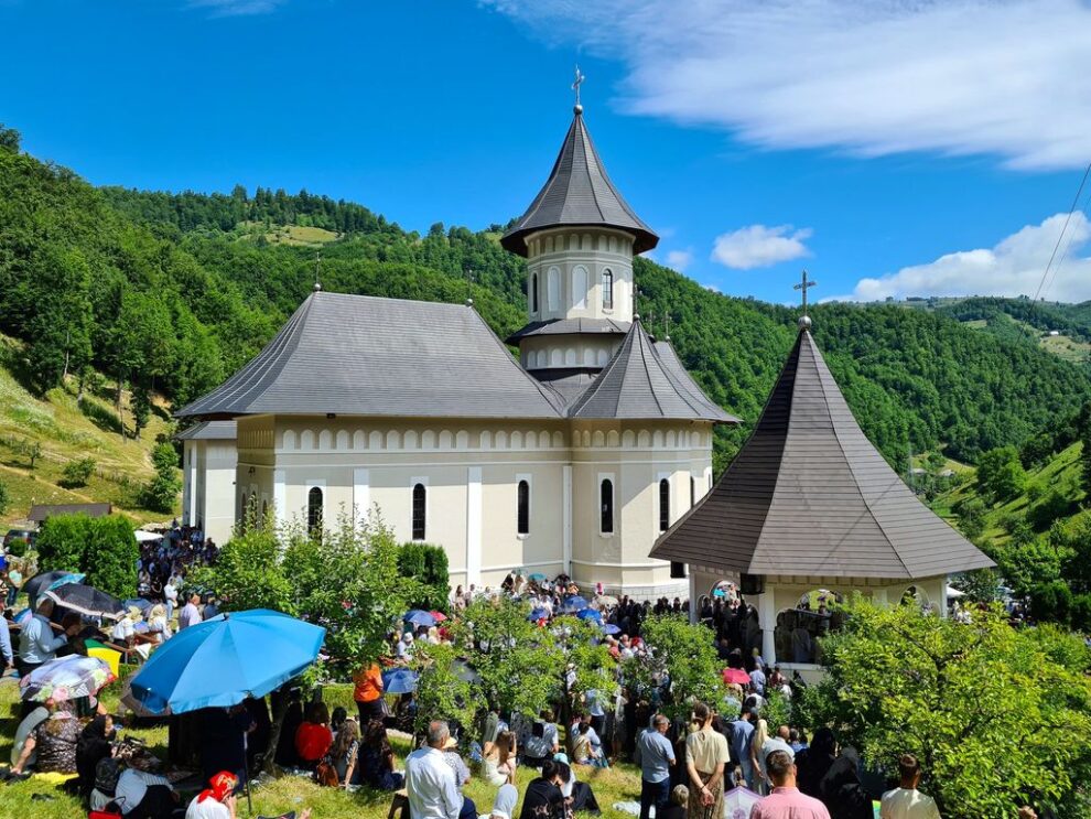 La altarul de vară al mănăstirii, IPS Andrei a oficiat Sfânta Liturghie înconjurat de un sobor de clerici, în prezența a mii de credincioși, mulți fiind îmbrăcați în straie populare.